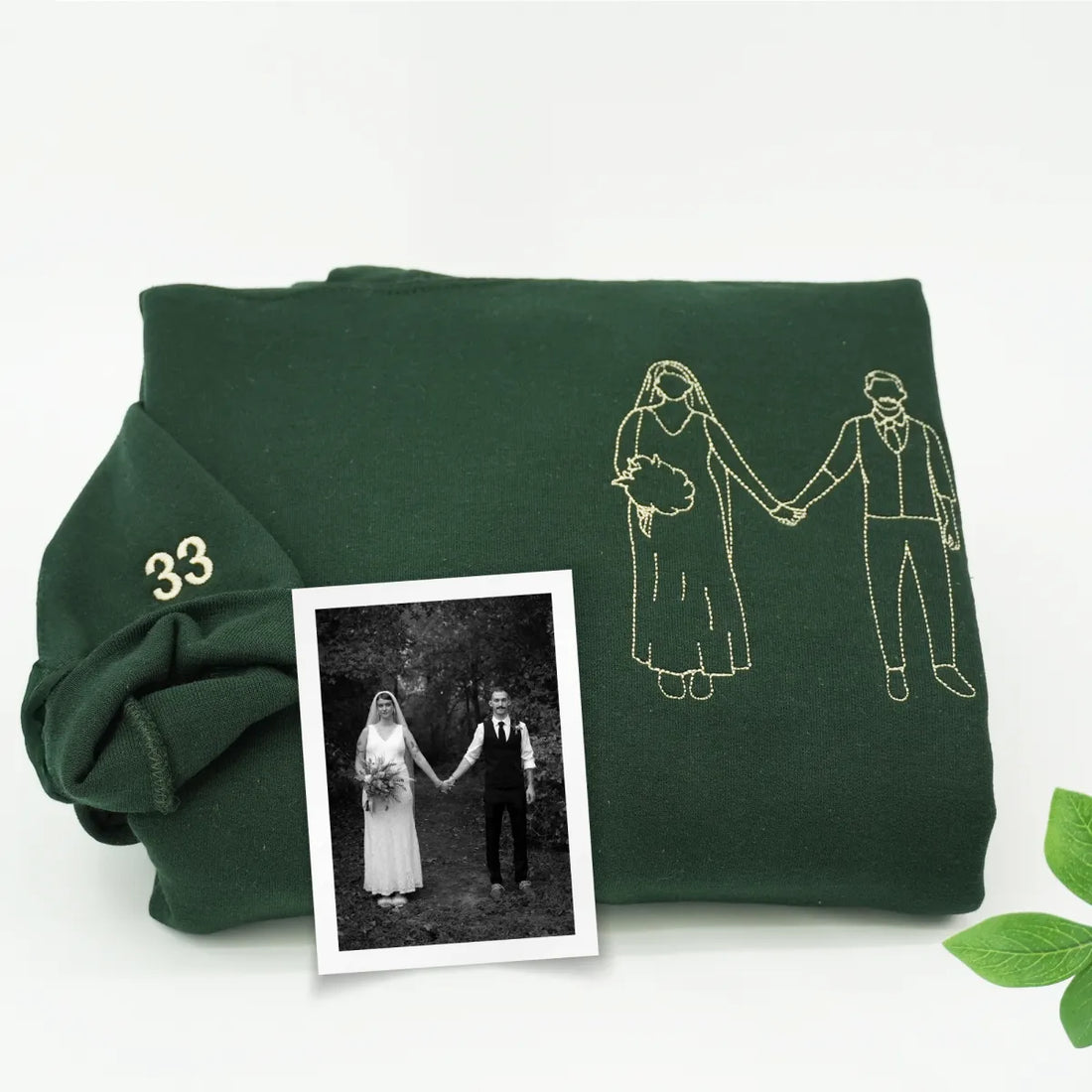 Embroidered Wedding Hoodie with Couple Portrait - Matching Photo Gift