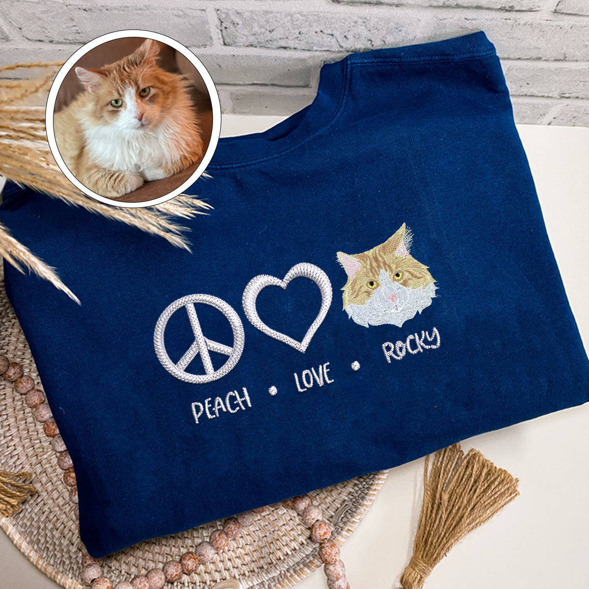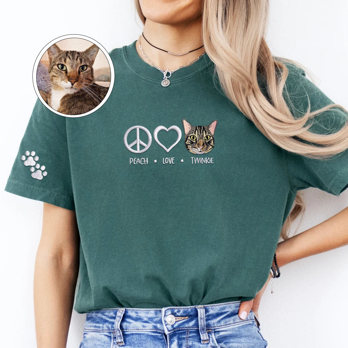 Discover our Custom Embroidered Peace Love Pet with Names T-Shirt, the ultimate gift for pet lovers! Lovingly crafted and intricately embroidered, this T-Shirt is a wonderful way to show your affection for your beloved pet. Perfect for Valentine's Day, Mother's Day, Father's Day, Christmas, or any special celebration, our pet T-Shirt promises to bring joy. Indulge yourself or surprise a pet lover with this thoughtful and unique present.